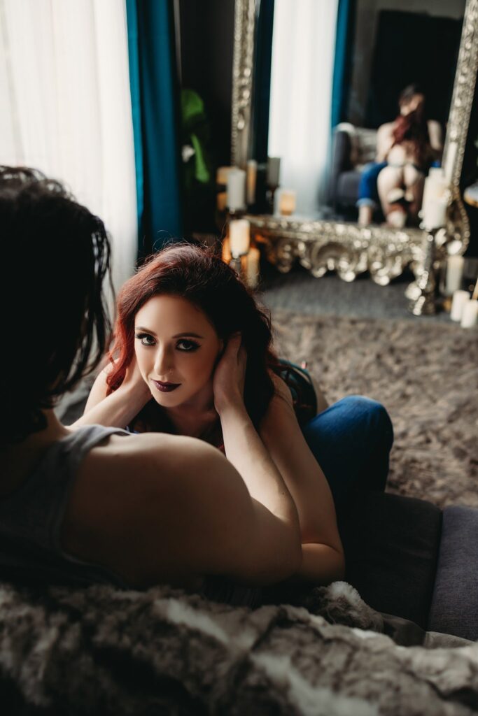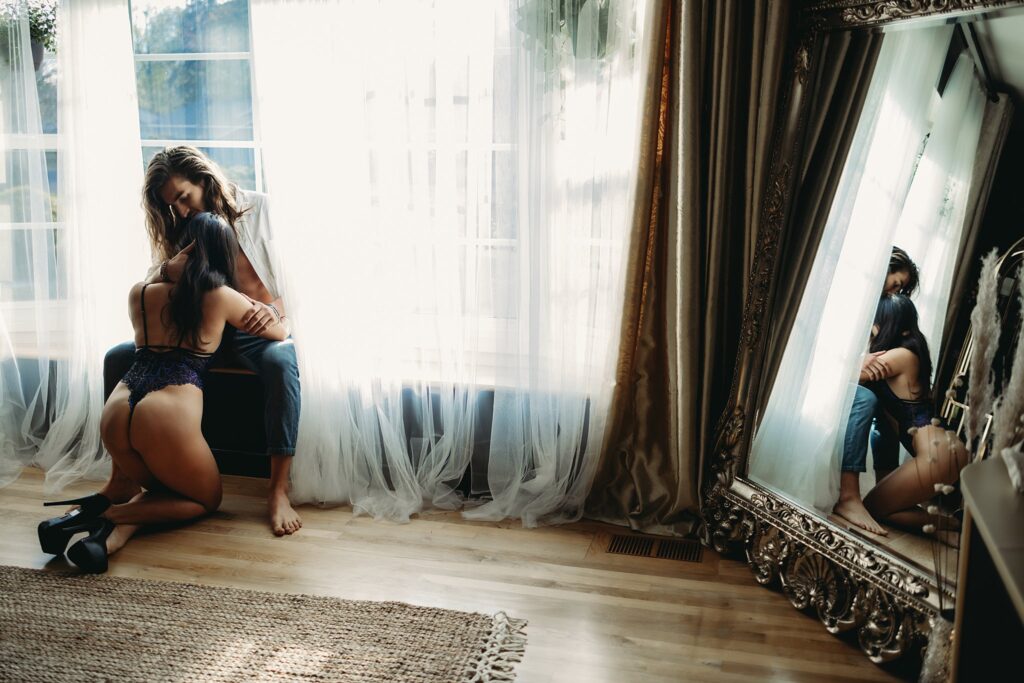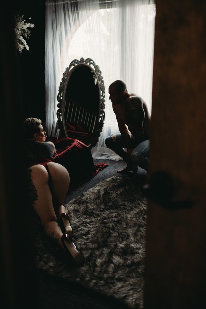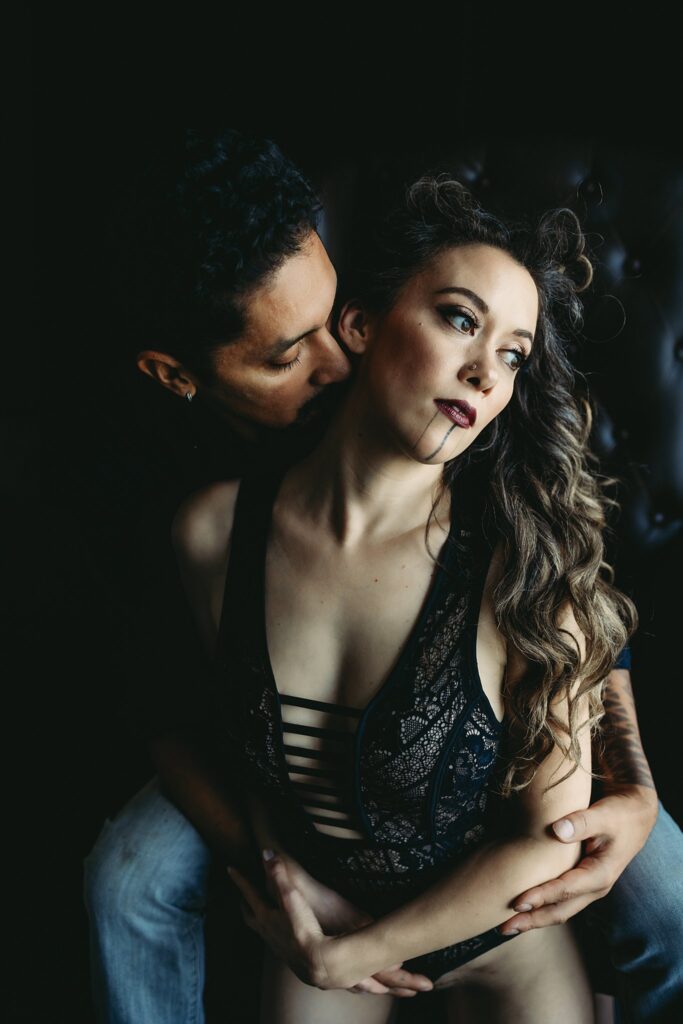 Some couples go for movies and dinner, and some book a couple boudoir session in our studio, and I’ll give you one guess which couple ends up having better connection and more fun!