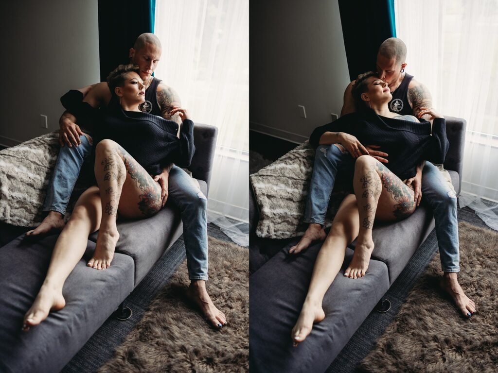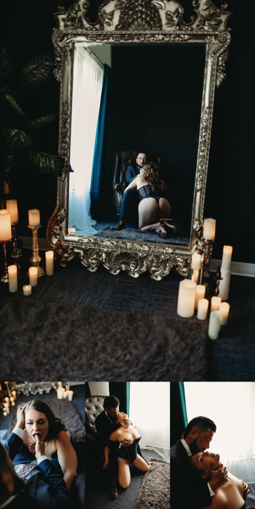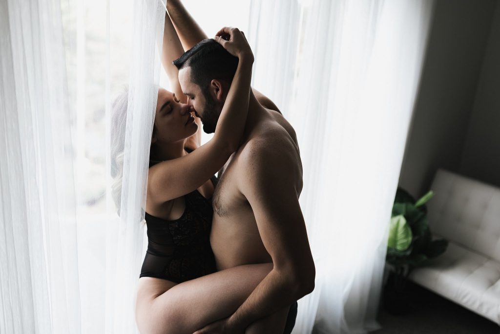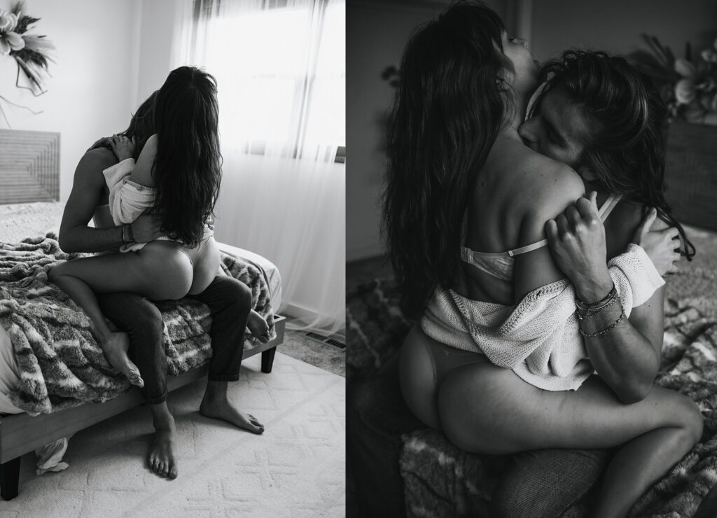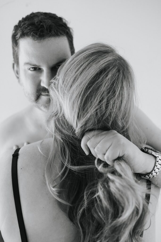 Some couples go for movies and dinner, and some book a couple boudoir session in our studio, and I’ll give you one guess which couple ends up having better connection and more fun!