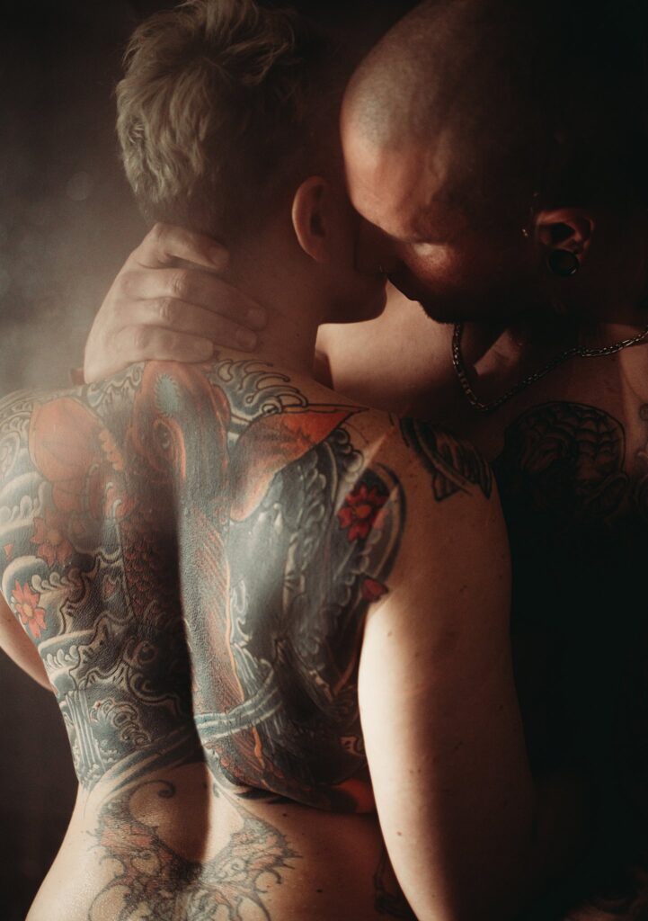 Sessions are held in our Portland studio and we always have full team on site, offering styling, wardrobe, expert posing and guidance. This is a professional setting and all images are “play pretend”. You will laugh, feel silly, enjoy your time, but there is no explicit moments in which professional boundaries are crossed.